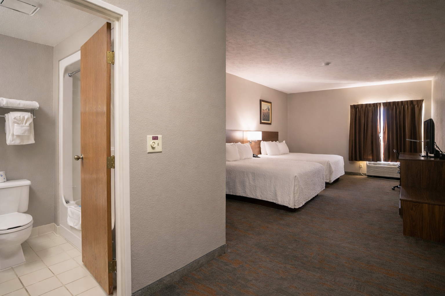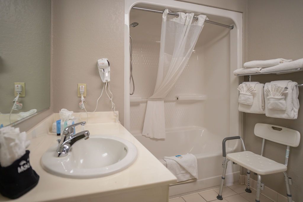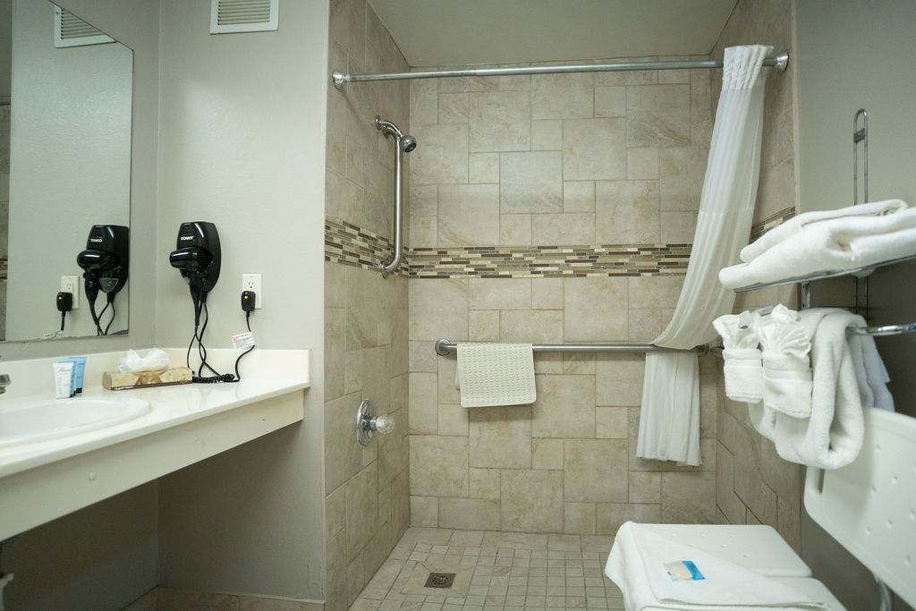 Ideal for friends or family traveling together, our Double Queen ADA-accessible rooms feature two Queen beds, a roll-in shower, free WiFi, a premium entertainment package, mini refrigerator, a spacious work desk, in-room coffee and more.