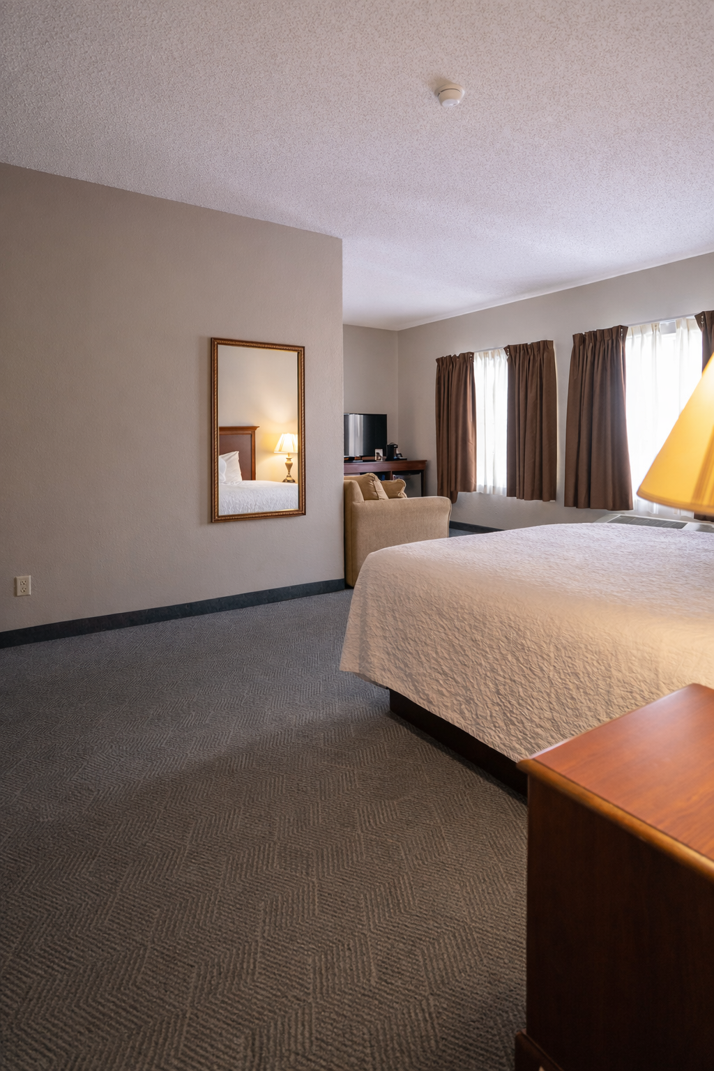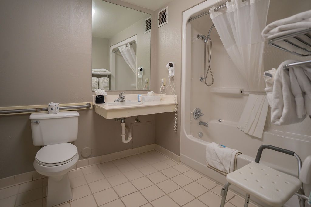 Featuring all the signature comforts of our standard King rooms, our ADA-accessible rooms pair comfort with convenience. This room includes a King bed, and features free WiFi, a premium entertainment package, mini refrigerator, a spacious work desk, in-room coffee, and more. Warm and inviting, our accessible King rooms provide cozy comfort you’re sure to enjoy.